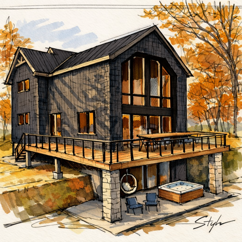 - Concevoir un chalet contemporain parfaitement intégré à son environnement naturel.