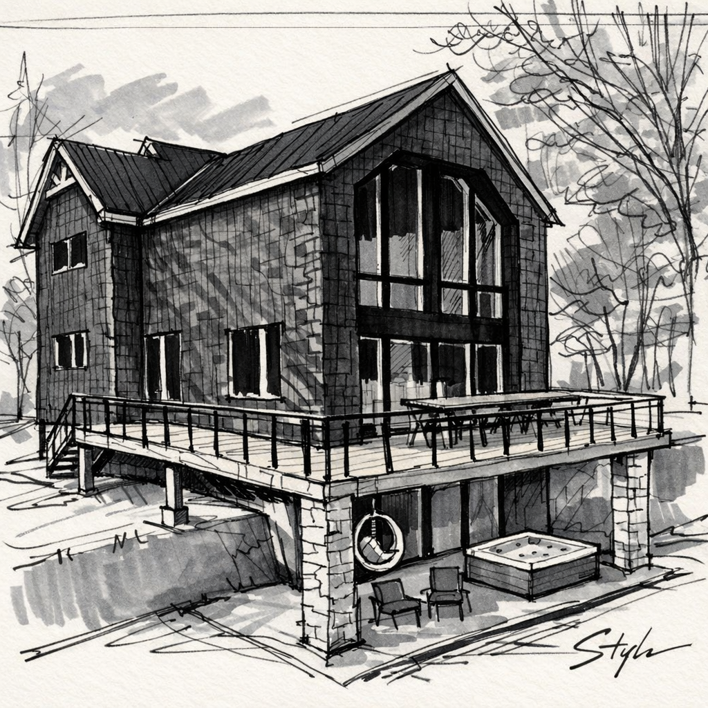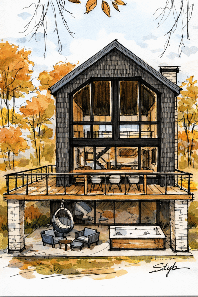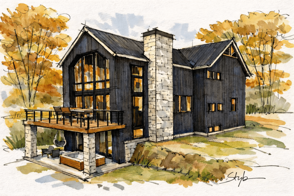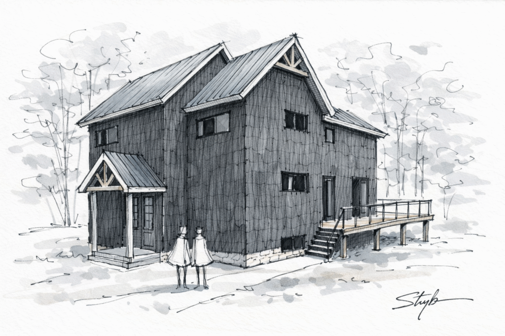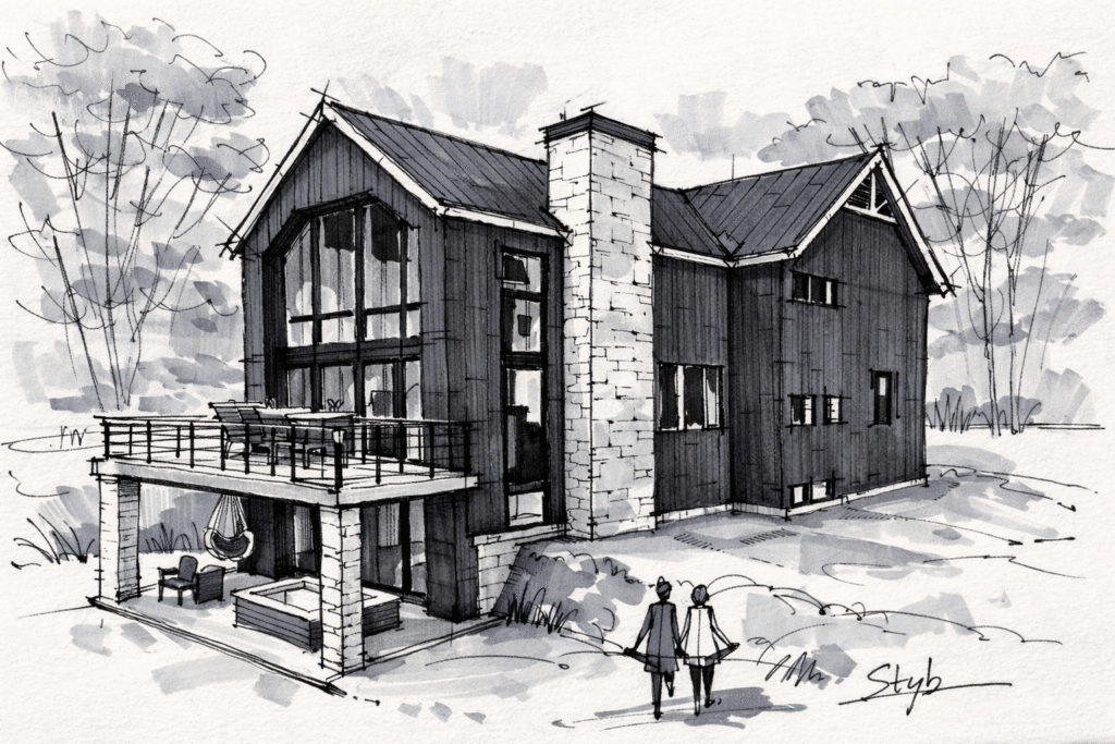Chaque choix de matériau et de proportion vise la durabilité, la simplicité constructive et le confort d’une vie quatre saisons.