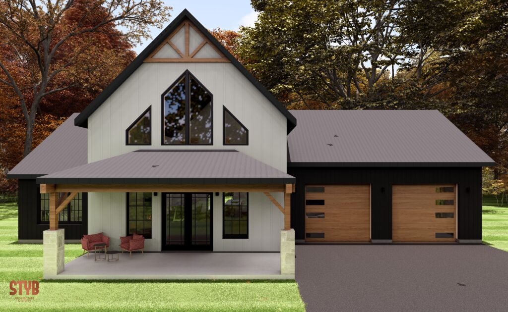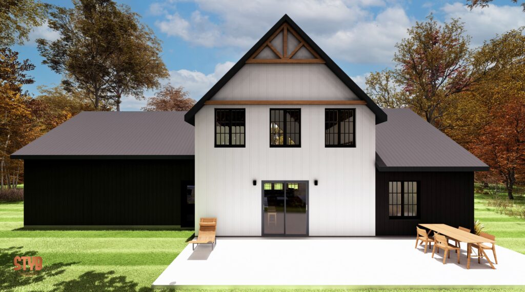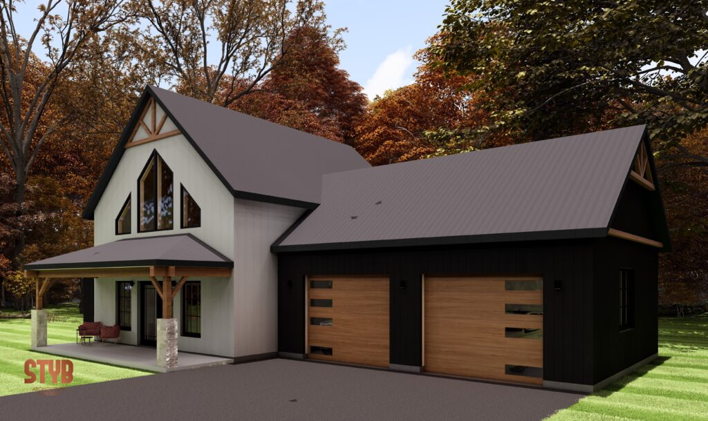 Nichée en pleine nature, cette résidence principale combine élégance et simplicité dans un style farmhouse moderne. Pensée pour l’autoconstruction, elle mise sur une volumétrie épurée, des poutres apparentes, une toiture métallique et une fenestration signature qui capte la lumière naturelle à chaque moment de la journée.