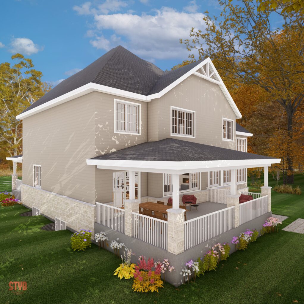 Ce projet de construction neuve bigénérationnelle sur un terrain en milieu boisé avait pour ambition de créer une résidence familiale durable, à la fois moderne et intemporelle. L’objectif du client était de concevoir une maison principale spacieuse et lumineuse, intégrant un logement additionnel indépendant, tout en préservant la convivialité et le confort des espaces partagés.